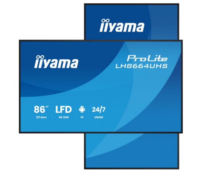 MONITOR IIYAMA 86" 3840X2160, UHD IPS DLED 450CD/M / 8MS, LANDSCAPE-PORTRAIT / MM 2X 16W, 2X HDMI, USB C / 2X USB 2.0 / WIFI, LAN, MEDIA PLAY USB , RJ45 / RS232C, IISIGNAGE2, E-SHARE, ANDROID 14 OS / 24/7 / VESA 800X600 (LH8664UHS-B3AG)