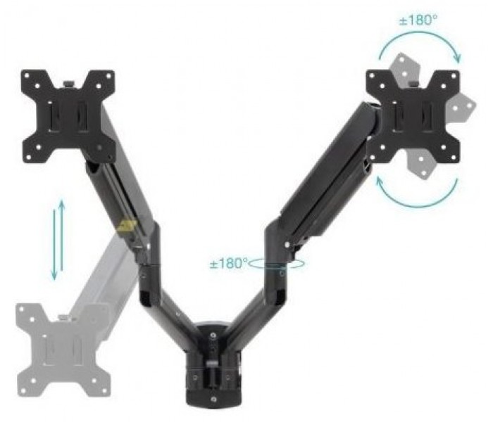 Soporte de Pared para 2 Monitores TooQ LP1434TNR-B/ Giratorio/ Inclinable/ Rotatorio/ hasta 10kg