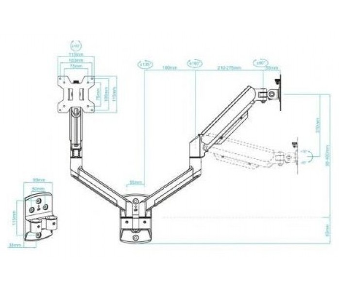 • Peso soportado de pantalla: Mínimo 2 kg, Máximo 10 kg por cada brazo