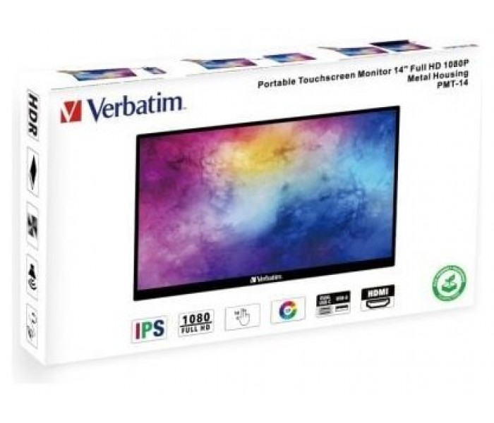 - Monitor táctil portátil Verbatim PMT-14 14" Full HD 1080p con carcasa de metal