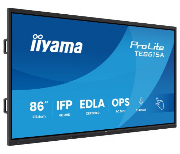 IIYAMA MONITOR INTERACTIVO 86" EDLA,ANDROID 14, 16/128GB UHD IPS, MM 2X 20W + 20W SUBWR, 2X HDMI, DP , 1X USB-C, 550CD/M, HORIZ , MEDIA PLAY USB PORTS, ANTIGLARE, LAN, RS232C, IIWARE WIFI-6/BT 5.0, OPS SLOT, VESA 600X400 (MOUNT INCLUDED) (TE8615A-B1