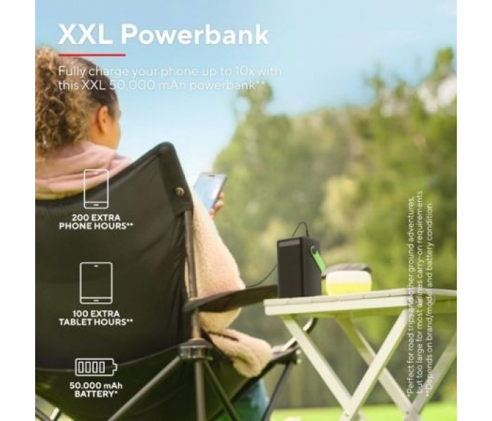 ¿No le queda batería? ¡No hay problema!. Esta es la batería externa definitiva con la que la carga dura tanto como sea necesario. Con hasta 200 horas adicionales de batería en el teléfono o 100 horas adicionales en la tableta, la Redoh XXL garantiza disponibilidad en todo momento.. . Especificaciones:. . General. . Number of USB ports: 4. . Sustainability. . Plastic material: ABS/PC. . Features. . Dangerous goods: Yes. Flashlight: flashlight. . Size & Weight. . Total weight: 1132 g. Weight of main unit: 1123 g. Depth of main product (in mm): 75 mm. Width of main product (in mm): 85 mm. Height of main product (in mm): 139 mm. . Control. . Indicators: Battery level. . Protection. . Protections: over-discharge, over-heat, over-load, short-circuit. . Power. . Safe & certified battery: Yes. Battery capacity (mAh): 50000 mAh. Battery voltage (Volt): 3.7 V. Recharge time: 11 hours. Watt-hour rating: 185 Wh. . Input. . Input port: USB-C. Input power: 18W. Fast re-charging: Yes. . Output. . USB port A types: 3. USB port C types: 1. Charging technology: auto-detect, USB PD 3.0 + PPS. Output specification - Port 1: 2.4A/12W, auto-detect. Output specification - Port 2: 18W, QC 3.0, auto-detect. Output specification - Port 3: 18W, QC 3.0, auto-detect. Output specification - Port 4: 18W, PD, USB-C. Total output power (max): A, W: 20W. . Compatibility. . Compatible Device Types: tablet, smartphone