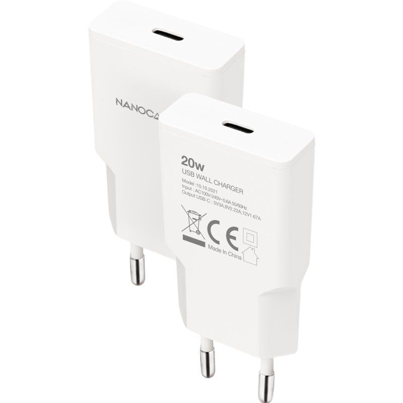 Cargador de Pared Nanocable 10.10.2021/ 1xUSB Tipo-C/ 20W/ Blanco