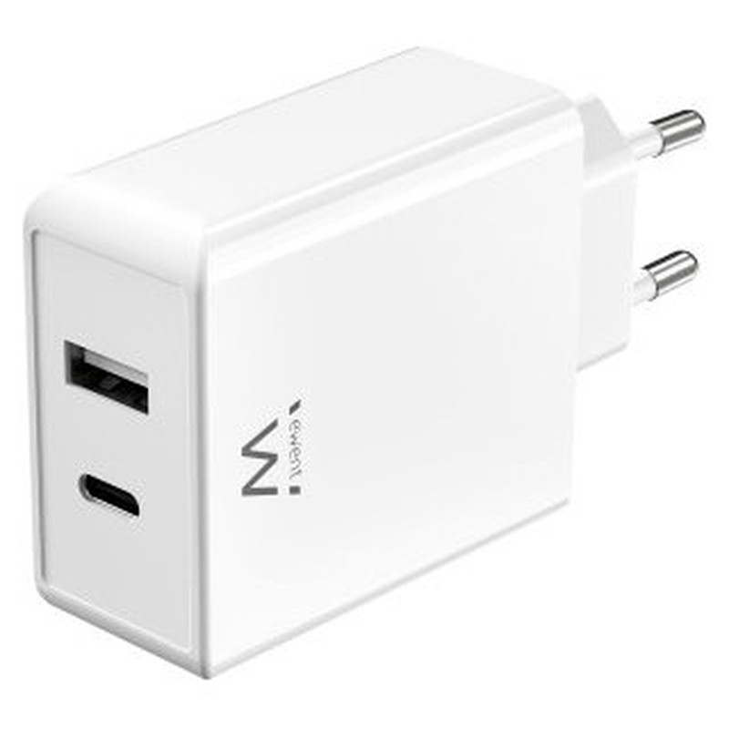 Cargue su Macbook, iPhone y AirPods al mismo tiempo con el cargador Ewent EW1328 USB-C+USB-A de 2 puertos y 45W. Potente y compacto gracias a la tecnología GaN Fast. Aprovecha hasta 45 W de potencia cuando usas un solo puerto USB-C. Gracias a su tamaño, se puede guardar en un bolsillo o bolso, lo que lo hace ideal para el hogar y los viajes.Este potente pero compacto cargador USB-C es fácil de llevar contigo. El cargador USB-C deja de cargar automáticamente cuando la batería está llena.Para dispositivos AppleLos últimos iPhones solo incluyen un cable de carga. No se incluye un cargador USB-C. El cargador EW1328 USB-C y USB-A GaN Fast de 45 W diseñado para cargar los últimos iPhone. Conecta tu iPhone al cargador rápido USB-C y USB-A de 45 W de Ewent y tu smartphone se cargará hasta un 75 % en solo 30 minutos.Dispositivos Android compatibles con Power DeliveryUtilice el cargador rápido EW1328 de 45 W USB-C y USB-A para cargar su teléfono inteligente, tablet o portátil Android con Power Delivery. El cargador USB negocia con su teléfono inteligente/tablet o portátil para encontrar el perfil de carga adecuado.Tecnología rápida de GaNEl cargador Ewent EW1328 es GaN Fast. GaN significa nitruro de galio, que es un tipo de material utilizado para fabricar electrónica de potencia. GaN utiliza el material para aumentar la eficiencia del cargador y reducir el tamaño y el peso del cargador. PD significa Power Delivery, una tecnología que permite que los dispositivos se carguen a una potencia más alta, lo que permite tiempos de carga más rápidos.Tecnología PPS estándarEl cargador USB-C + USB-A de 45 W tiene un PPS (fuente de alimentación programable), que es un estándar que hace referencia a la tecnología de carga avanzada para dispositivos USB-C. Puede cambiar el voltaje y la corriente en tiempo real proporcionando la máxima potencia de acuerdo con el estado de carga del dispositivo. La principal ventaja de PPS sobre otros estándares es su capacidad para reducir la pérdida de conversión durante la recarga. Esto significa que se genera menos calor, lo que prolonga la vida útil de la batería del dispositivo.