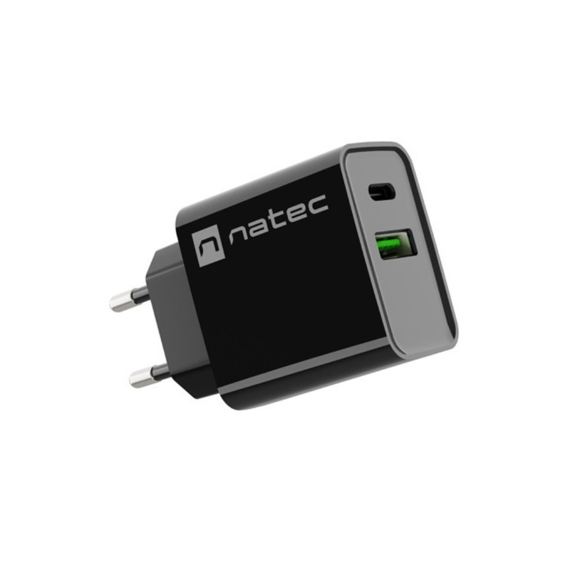CARGADOR NATEC RIBERA 20W 1XUSB-A + 1XUSB-C PD3.0 QC3.0 NEGRO