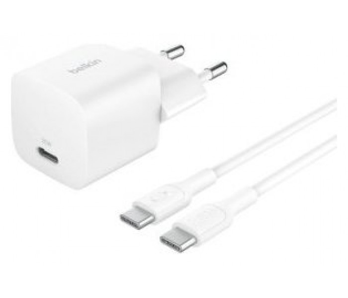 CARGADOR DE PARED BELKIN WCA012KQ1MWH-B6 USB-C PD 25W + CABLE USB-C A USB-C 1m COLOR BLANCO