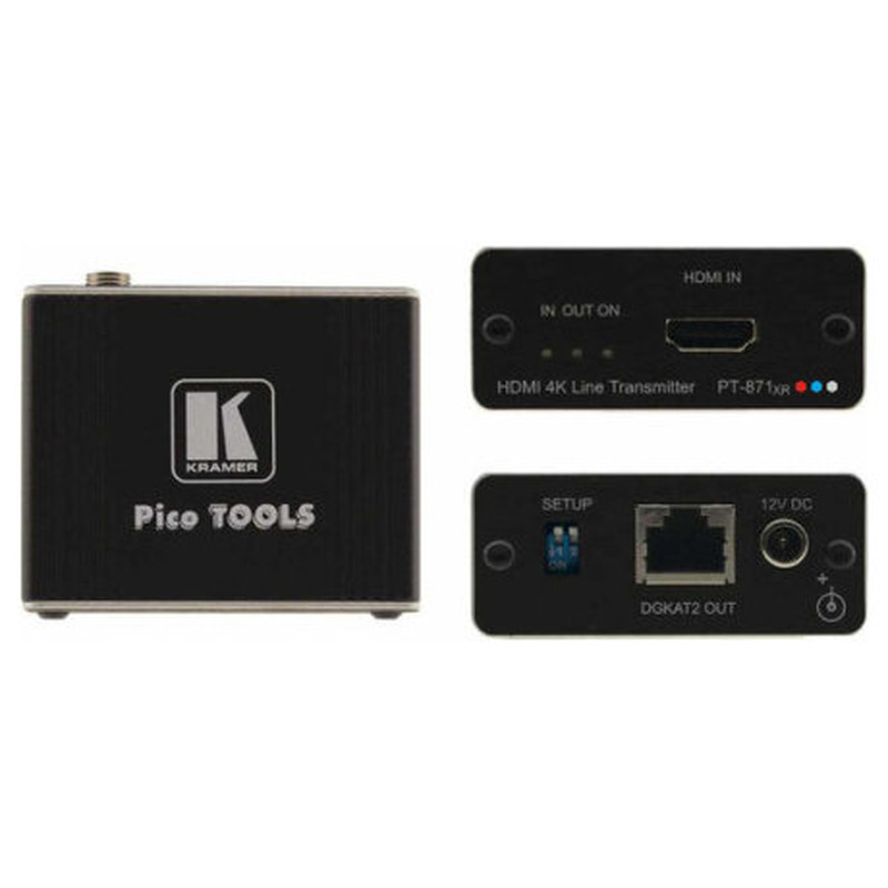 Kramer PT-871XR 4K HDR HDMI Compact PoC Transmitter es un transmisor DGKat™ 2.0 de alto rendimiento y largo alcance para señales 4K@60Hz (4:4:4) HDR, HDMI, HDCP 2.2 y alimentación PoC bidireccional sobre par trenzado. Convierte la señal HDMI en la señal DGKat™ 2.0 transmitida. PT-871xr extiende la señal hasta 60m (200ft) con resolución 4K@60Hz (4:4:4) y hasta 70m (230ft) con resolución 4K@30Hz (4:4:4) 24bpp sobre cables blindados Kramer.