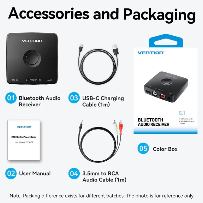 Vention Bluetooth Audio receiver a RCA y 3.5mm NAJBO Negro