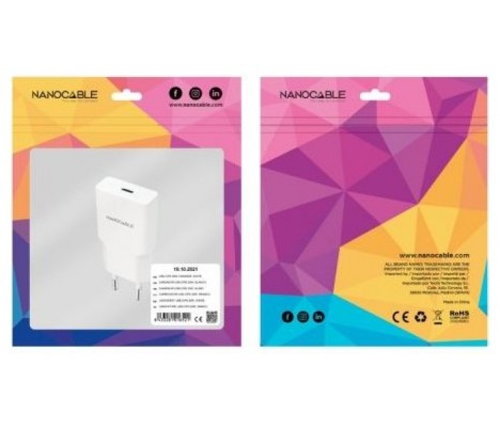 Cargador de Pared Nanocable 10.10.2021/ 1xUSB Tipo-C/ 20W/ Blanco