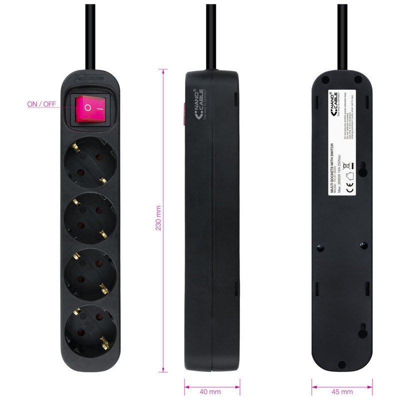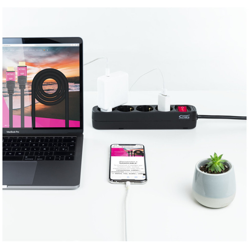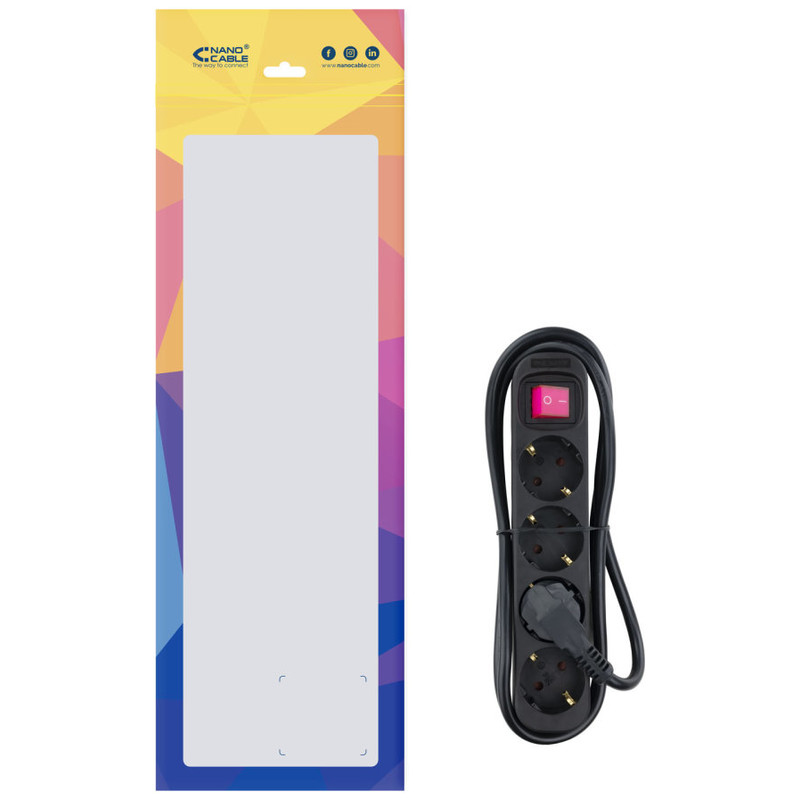 Regleta con Interruptor Nanocable 10.37.0004-BK/ 4 Tomas de Corriente/ Cable 1.4m/ Negro
