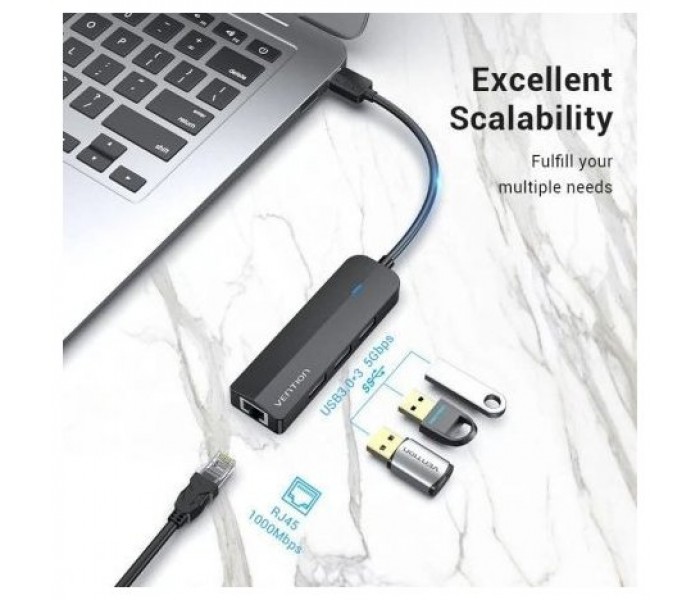 Hub USB 3.0 Vention CHNBB/ RJ45/ 3xUSB/ 1xMicroUSB PD