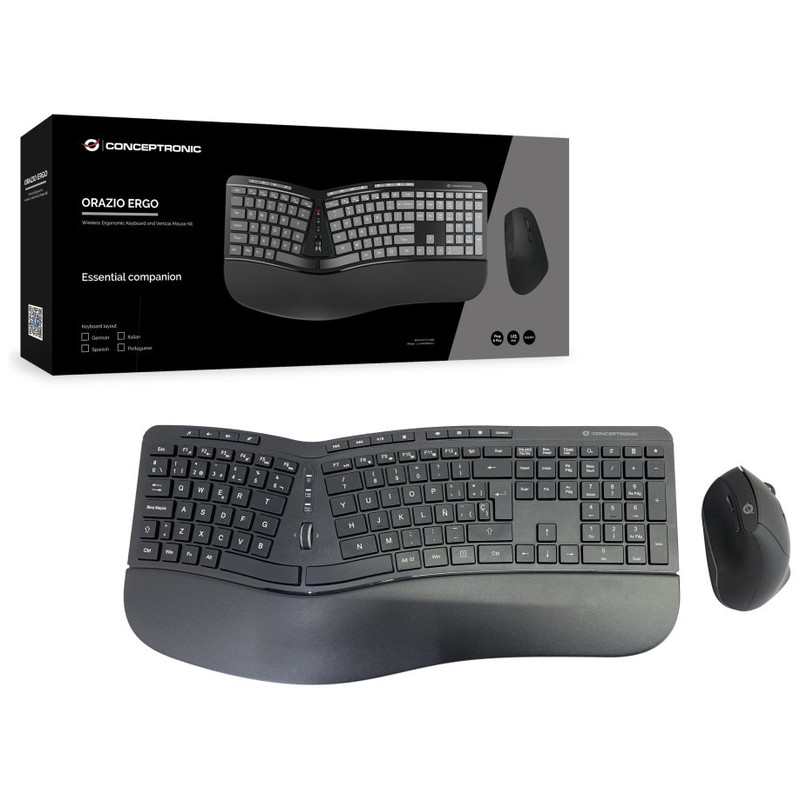TECLADO Y MOUSE COMBO WIRELESS ERGONOMICO CONCEPTRONIC ORAZIO20