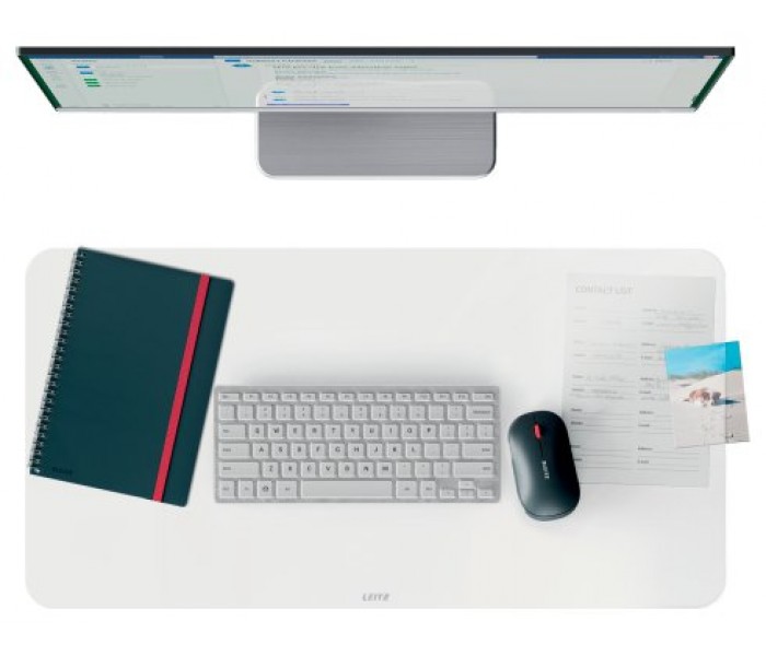 Mantente productivo y siéntete bien dondequiera que te lleve tu jornada laboral con la alfombrilla de escritorio transparente Leitz. Se trata de una discreta y elegante alfombrilla protectora de escritorio diseñada para mantener tu espacio de trabajo ordenado y organizado. Su gran superficie de 70 x 36 cm protegerá tu escritorio de arañazos, rozaduras y salpicaduras. Multifuncional, su generosa anchura ofrece espacio para teclado, ratón, bloc de notas y accesorios. Con esquinas redondeadas y fabricado con material antideslizante, es fácil de limpiar e impermeable. Además, el acabado transparente mate permite colocar debajo elementos adicionales, como calendarios o fotos, para facilitar tu consulta. Se adapta perfectamente a cualquier escritorio estándar, así como a la estación de trabajo Leitz Ergo. FEEL GOOD con Leitz.