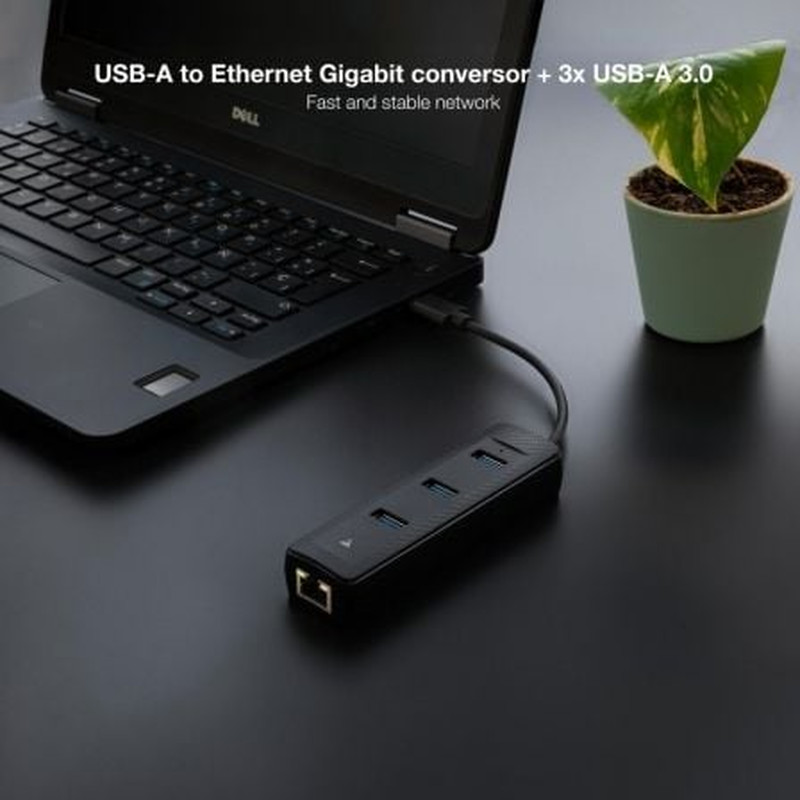CONVERSOR USB3.0 A ETHERNET 3xUSB3.0 USB-A/M-RJ45/