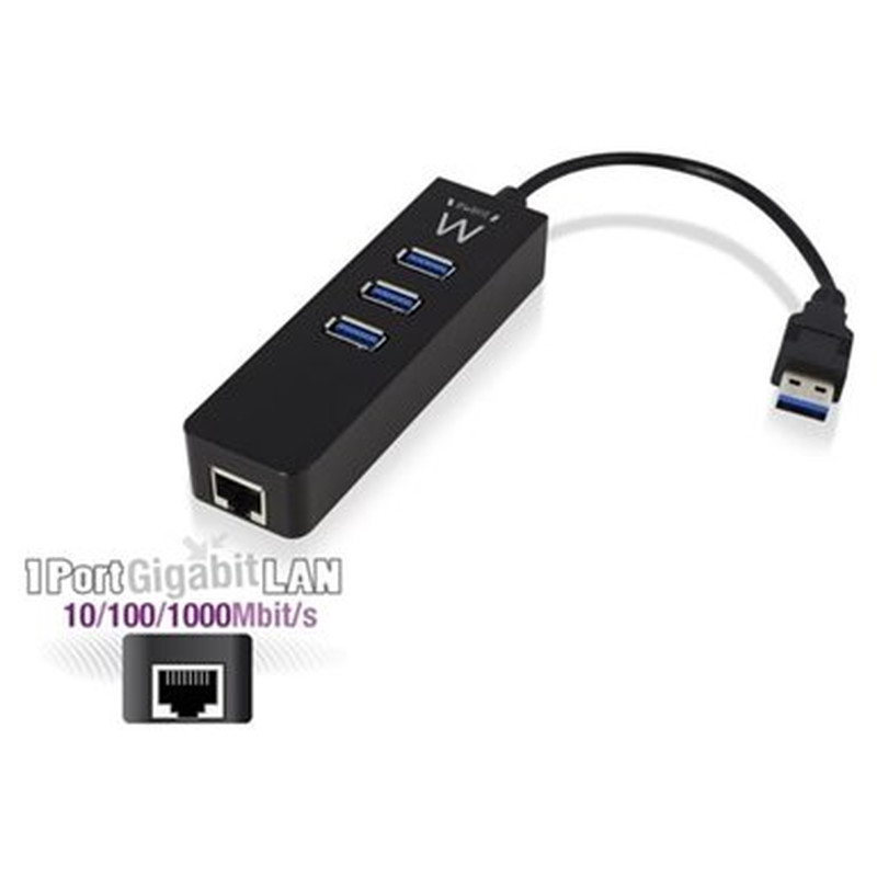 El concentrador de 3 puertos USB 3.1 Gen1 (USB 3.0) EW1140 con puerto de red Gigabit es compatible con la versión anterior USB 2.0 y las especificaciones 10/100 Mbps.