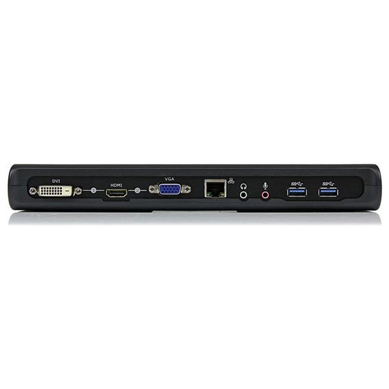 Esta versátil estación de conexión USB 3.0 incluye tres salidas para monitor externo (HDMI, DVI-D y VGA) que permiten diferentes combinaciones (HDMI y DVI-D, o bien HDMI y VGA) para expandir o duplicar el escritorio. Cada salida de vídeo soporta resoluciones HD (alta definición) (2048 máximo) y reproducción de vídeo HD, lo cual representa una solución ideal para ampliar la capacidad de vídeo de un ordenador portátil.