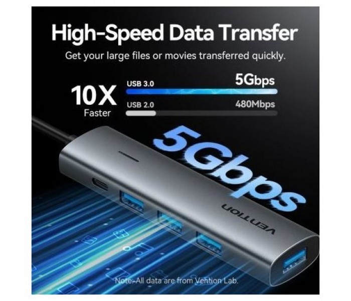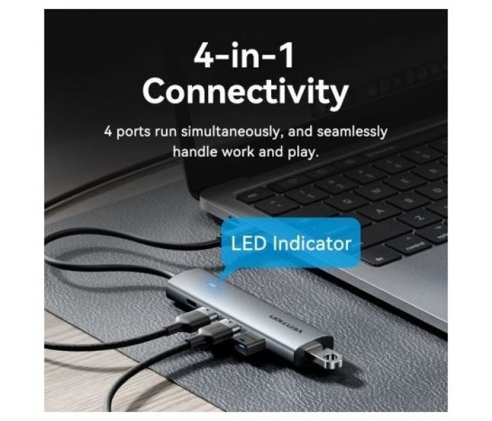 Hub USB Tipo-C 3.0 Vention TGZHB/ 3xUSB/ 1xUSB Tipo-C PD/ Gris