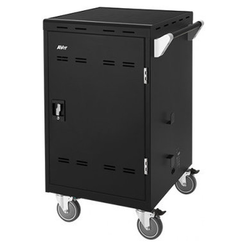 Con el carro de carga AVER E32cPlus para 32 portátiles/Chromebooks/tabletas de hasta 15,6 pulgadas, cargar y transportar sus dispositivos de A a B es un juego de niños.