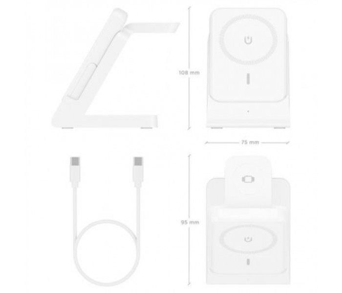 - Permite cargar simultáneamente tu smartphone, Apple Watch y auriculares con estuche de carga. Ofrece una potencia de hasta 15W para una carga rápida y eficiente. Su diseño elegante, moderno y compacto lo hace ideal para el hogar, la oficina o para llevarlo contigo a cualquier parte.