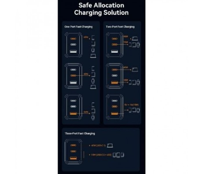 Cargador GaN de 3 puertos USB (C + C + A) (65W/65W/60W)