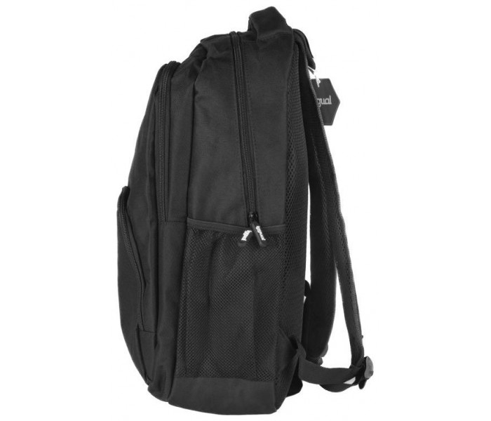 Características | - Portátil de hasta 15,6" - Dos compartimentos separados - Bolsillo exterior frontal - Bolsillos laterales de rejilla - Material exterior: tela de poliéster Oxford - Resistente a salpicaduras - Material interior: poliéster - Color interior: negro - Color exterior: negro - Medidas: 47 alto x 32 ancho x 14,5 profundo cm - Peso: 580 g |