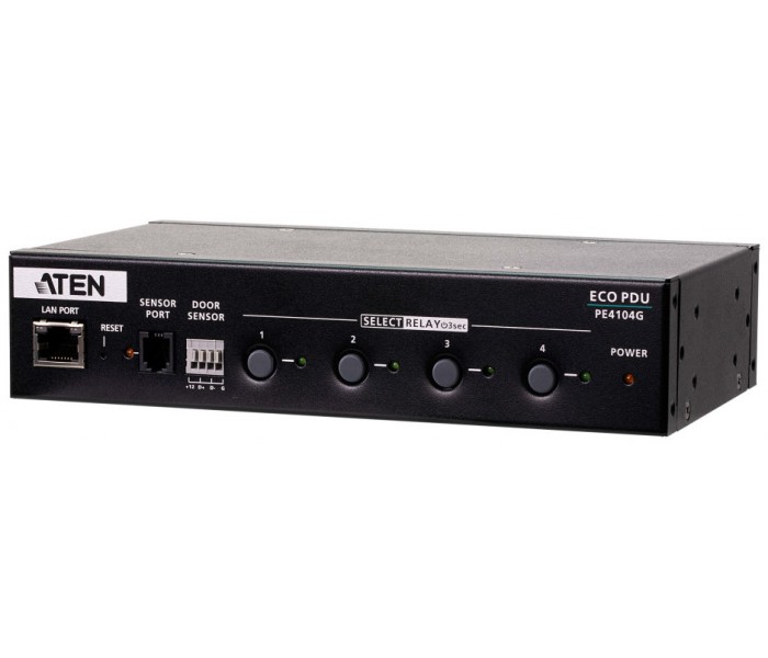 Aten PE4104G. Capacidad del rack: 1U, Color del producto: Negro. Cantidad de salidas AC: 4 salidas AC, Tipo de salida AC: C13 acoplador, Conector: C14 acoplador. Longitud de cable: 3 m, Certificación: CE-EMC CE-LVD. Voltaje nominal de entrada: 100-240 V, Máxima corriente: 10 A. Ancho: 200 mm, Profundidad: 115 mm, Altura: 44 mm