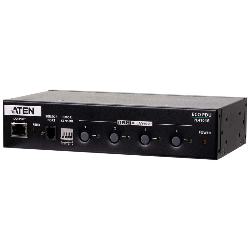 Aten PE4104G. Capacidad del rack: 1U, Color del producto: Negro. Cantidad de salidas AC: 4 salidas AC, Tipo de salida AC: C13 acoplador, Conector: C14 acoplador. Longitud de cable: 3 m, Certificación: CE-EMC CE-LVD. Voltaje nominal de entrada: 100-240 V, Máxima corriente: 10 A. Ancho: 200 mm, Profundidad: 115 mm, Altura: 44 mm