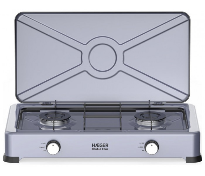 • HORNILLO DE GAS 2 FUEGOS DOUBLE COOK GRIS HAEGER (Espera 4 dias)