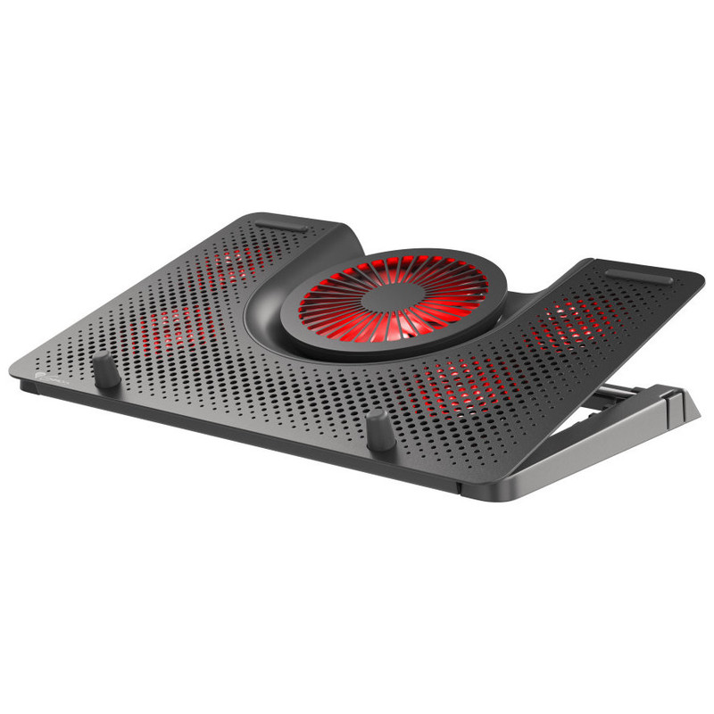 APUESTA POR EL RENDIMIENTO CON EL GENESIS OXID 550 ¿Las largas sesiones nocturnas de juego hacen que tu portátil se sobrecaliente y esto te impide seguir jugando? El soporte de refrigeración Genesis Oxid 550 no sólo enfriará los componentes de su ordenador, sino que también le sorprenderá por su elegante diseño y su iluminación roja que hará que cualquier estación de trabajo sea única. ¿BAJA TEMPERATURA? ES POSIBLE El soporte Genesis Oxid 550 está diseñado para portátiles de hasta 17,3". Modelos tan grandes pueden descansar con seguridad en su superficie gracias a las protecciones de goma adicionales. Evitan que el portátil resbale y se produzcan caídas indeseadas. 5 POTENTES VENTILADORES El sistema de refrigeración del Genesis Oxid 550 se basa en cuatro ventiladores más pequeños que sacan el aire caliente de debajo del portátil y un ventilador grande que introduce aire frío. Al distribuirlos por toda la superficie, el portátil se refrigera de forma uniforme. A esto también contribuye el panel frontal de aluminio. TELÉFONO SIEMPRE CONTIGO El Genesis Oxid 550 cuenta con un soporte para teléfono extraíble que se puede montar en el lado derecho o izquierdo del soporte. Así, si quieres mantenerte en contacto con el mundo durante el juego o estar al tanto de información importante, tu teléfono estará siempre a mano. Todo lo que necesitas para jugar AJUSTE DEL ÁNGULO El Oxid 550 también es ergonomía. Cinco niveles de ajuste del ángulo le permiten colocar el portátil en la posición más cómoda para usted. Colocar el portátil a la altura correcta aliviará la tensión en el cuello, eliminará la fatiga visual y le permitirá mantener una postura correcta durante largas horas. El Oxid 550 también es ergonómico. DISEÑO ÚNICO La funcionalidad no lo es todo. El soporte Oxid 550 también tiene un gran diseño. Los elementos negros y rojos le dan un aspecto agresivo. También había retroiluminación del ventilador, lo que hará que el Oxid 550 se vea único en su escritorio. Protección del medio ambiente