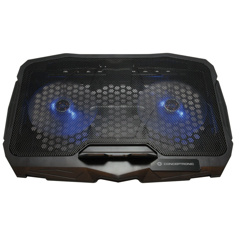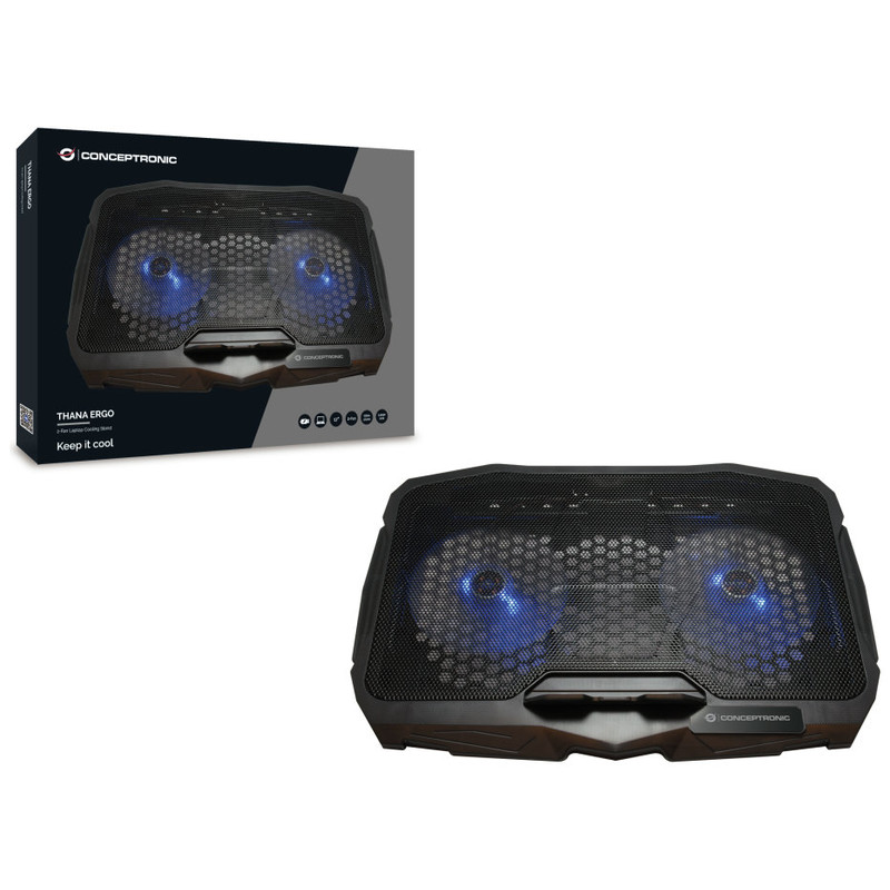 Tamaño máximo de pantalla: 17 Número de ventiladores incluidos: 2 pieza(s) Diámetro de ventilador: 125 mm Color del producto: Negro Iluminación: Sí Iluminación de color: Azul País de origen: China USB con suministro de corriente: Sí Ancho: 280 mm Profundidad: 28 mm Altura: 390 mm Peso: 920 g Ancho del paquete: 290 mm Profundidad del paquete: 40 mm Altura del paquete: 400 mm Peso del paquete: 1120 g Tipo de embalaje: Caja