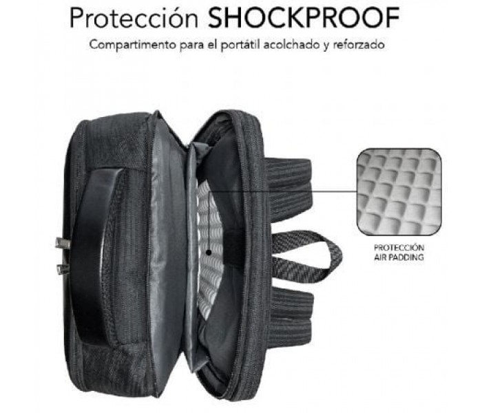 - Departamento independiente con espacio acolchado para el portátil con sistema AIR PADDING de alta protección y doble cremallera de cierre