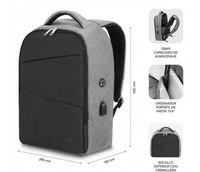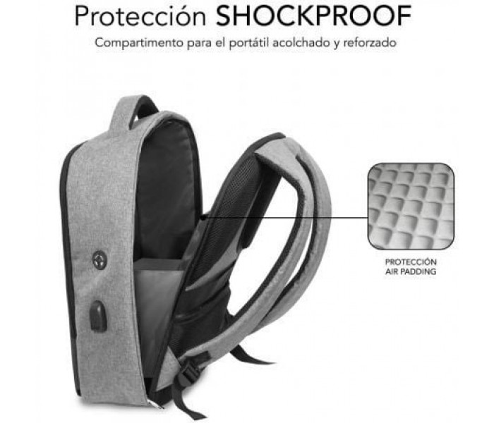 Mochila Subblim Secure V2 AP para Portátiles hasta 15.6"/ Puerto USB/ Antirrobo/ Gris