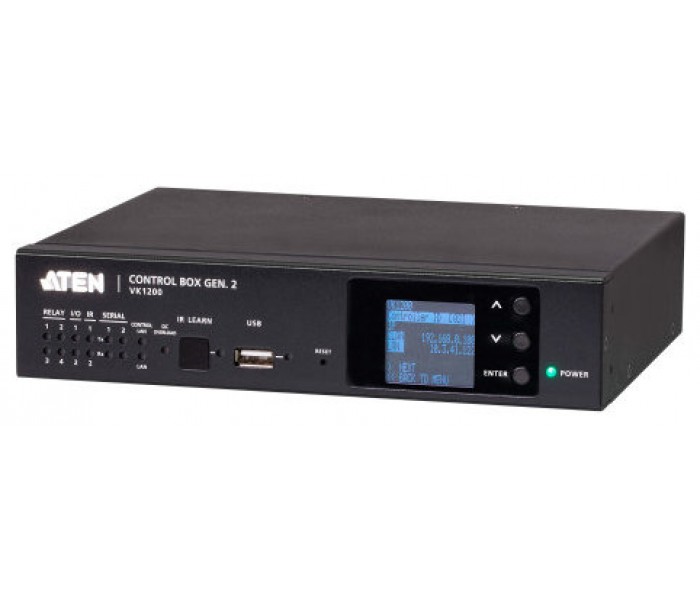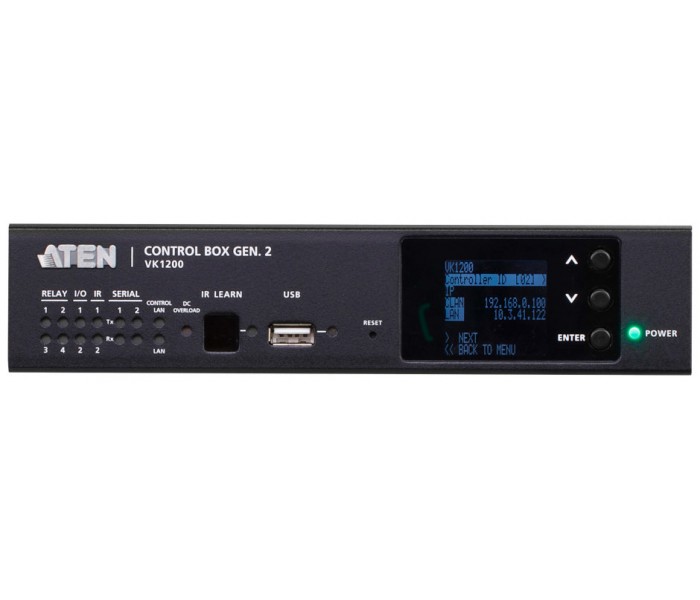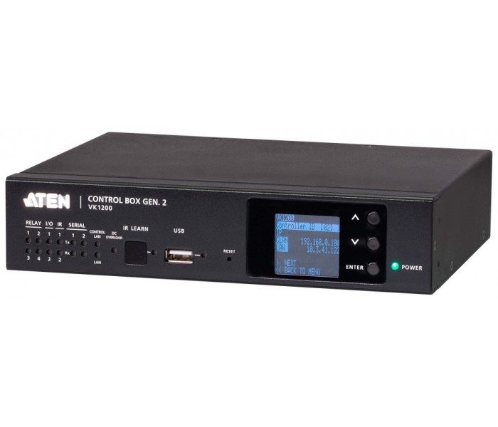 VK1200, el procesador de control de segunda generación de ATEN, cuenta con el procesador de mayor rendimiento de la serie. Equipado con una CPU de cuatro núcleos y una memoria de 2 GB/1 GB, el modelo VK1200 proporciona respuesta y actualizaciones de estado en tiempo real y puede procesar eventos complejos y de gran carga con diseños de interfaz gráfica de usuario personalizados, así como control de acceso multiusuario a los dispositivos conectados. VK1200 cuenta con puertos LAN duales y aislados, LAN y LAN de control. La LAN de control permite que los dispositivos gestionados estén protegidos de forma segura dentro de una red independiente de la red corporativa, para cumplir con la demanda de alta seguridad y estabilidad. Por otro lado, la LAN puede conectarse a ATEN Unizon, una plataforma centralizada que agiliza la gestión diaria de AV/TI, lo que aporta a los usuarios la comodidad de supervisar, solucionar problemas y mantener varios sistemas a la vez.El procesador de control VK1200 se puede utilizar para gestionar fácilmente cualquier entorno de la sala, y se puede implementar en una instalación existente mediante la integración fluida con los productos ATEN VanCryst ProAV, así como con prácticamente cualquier dispositivo de hardware o software que se encuentre en una sala, incluidos los equipos audiovisuales, la iluminación, los sistemas de conferencias, el aire acondicionado, los sensores de movimiento y los conmutadores de alimentación. VK1200 es la solución perfecta para gestionar implementaciones masivas de dispositivos, especialmente en entornos de seguridad estrictos con requisitos de alto rendimiento, como agencias gubernamentales, instalaciones militares, organizaciones corporativas e instituciones sanitarias.VK1200 forma parte de la serie de sistemas de control de ATEN, un sistema de gestión estándar basado en Ethernet, que consta de hardware, software y apps de configuración, interfaces de control y servicios relacionados, para controlar cualquier dispositivo de hardware y software dentro de un entorno de sala, como salas de juntas y aulas, y para proporcionar una gestión directa y centralizada sin esfuerzo a través de interfaces gráficas definidas por el usuario desde cualquier dispositivo móvil, teclado ATEN y panel táctil.