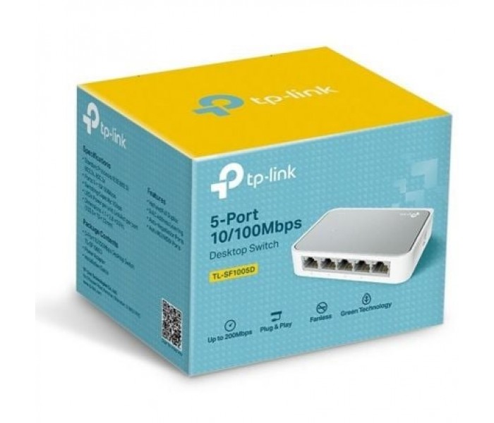 El Conmutador Fast Ethernet TL-SF1005D con 5 puertos a 10/100Mbps cuenta con 5 puertos RJ45 con autonegociación a 10/100Mbps. Todos los puertos soportan la función Auto MDI/MDIX, eliminando la necesidad de cables cruzados o puertos Uplink.\n\nEl conmutador es Plug-and-Play y cada uno de los puertos puede utilizarse como puerto general o puerto Uplink, se puede conectar a un servidor, hub o conmutador mediante cable directo o cable cruzado.\n\nEl Conmutador Fast Ethernet TL-SF1005D con 5 puertos a 10/100Mbps de TP-LINK le ofrece una actualización económica, fácil de usar, de alto rendimiento y perfectamente integrada para convertir su red antigua en una red a 100Mbps.\n\nAumentará el rendimiento de su red a una transferencia de datos a full duplex.\n\nLa conmutación de paquetes a velocidad de cable puede ser tan rápida como la velocidad a la que su red envía estos paquetes.