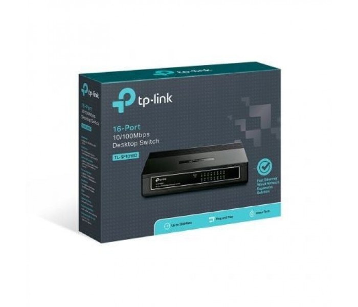El Conmutador Fast Ethernet TL-SF1016D con 16 puertos a 10/100Mbps cuenta con 16 puertos RJ45 con autonegociación a 10/100Mbps. Todos los puertos soportan la función Auto MDI/MDIX, eliminando la necesidad de cables cruzados o puertos Uplink. El conmutador es Plug-and-Play y cada uno de los puertos puede utilizarse como puerto general o puerto Uplink, se puede conectar a un servidor, hub o conmutador mediante cable directo o cable cruzado. El Conmutador Fast Ethernet TL-SF1016D con 16 puertos a 10/100Mbps de TP-LINK le ofrece una actualización económica, fácil de usar, de alto rendimiento y perfectamente integrada para convertir su red antigua en una red a 100Mbps. Aumentará el rendimiento de su red a una transferencia de datos a full duplex. La conmutación de paquetes a velocidad de cable puede ser tan rápida como la velocidad a la que su red envía estos paquetes.