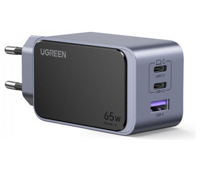 Ugreen Nexode Air 65W sieninis kroviklis, USB + 2x USB-C pilkos spalvos Ordenador portátil, Teléfono móvil, Ratón, Portátil, Batería portátil, Tableta Gris Corriente alterna Carga rápida Interior (Es