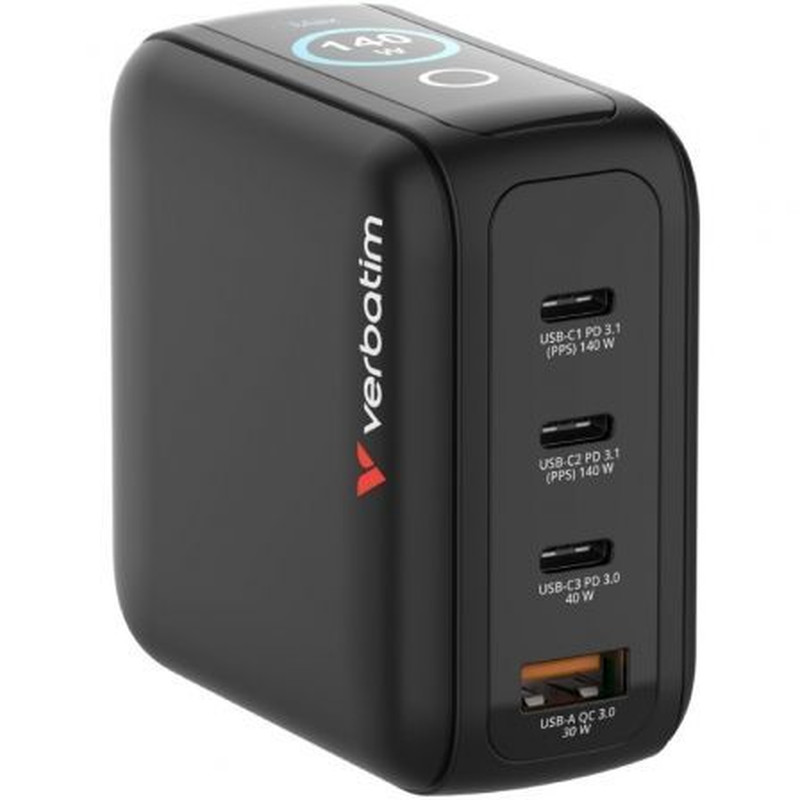 Mini cargador GaN Verbatim de 140 W con pantalla